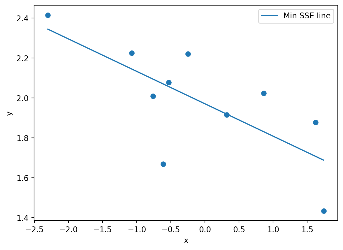 Plugging in the data, we get the straight line relationship that minimizes the sum of squared errors.