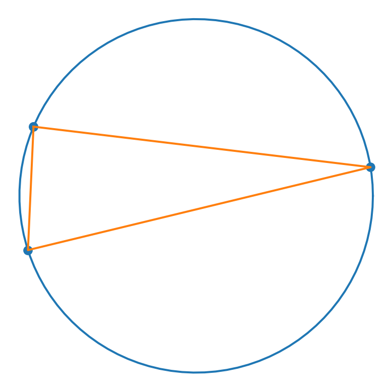 Consider the triangle that is formed by randomly selecting 3 points on the unit circle.