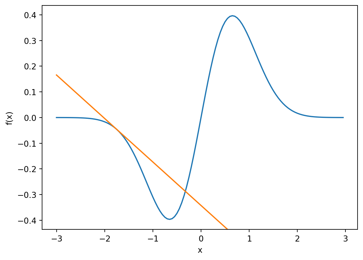 In the figure below, which value \(x\) maximizes \(f(x)\)? Which value minimizes it? Because \(f\) is a continuous function, we can use tools like the derivative to find the answers.