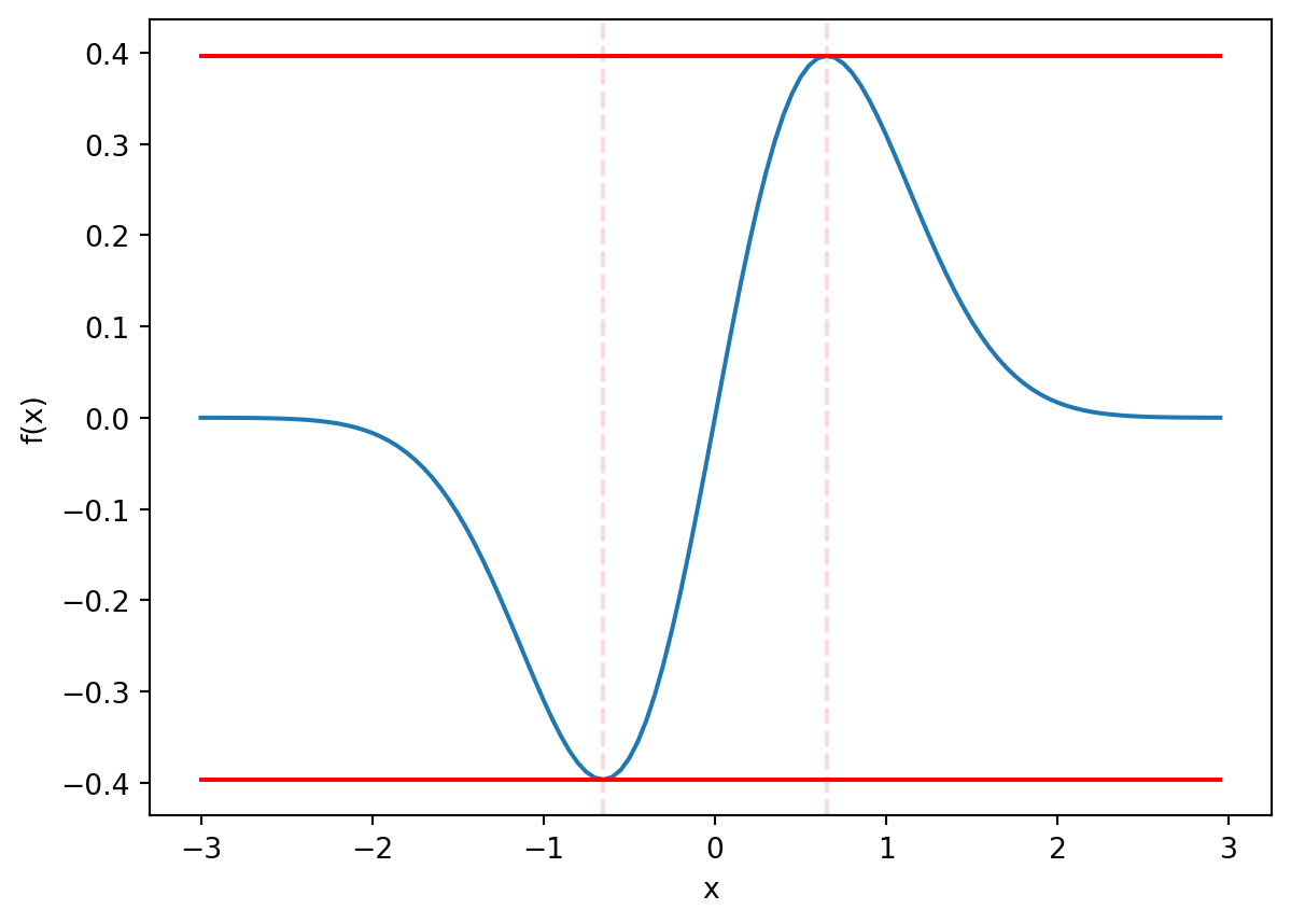 - Find the value of \(x\) which maximizes (or minimizes) the function \(f(x)\) using derivatives and roots.
