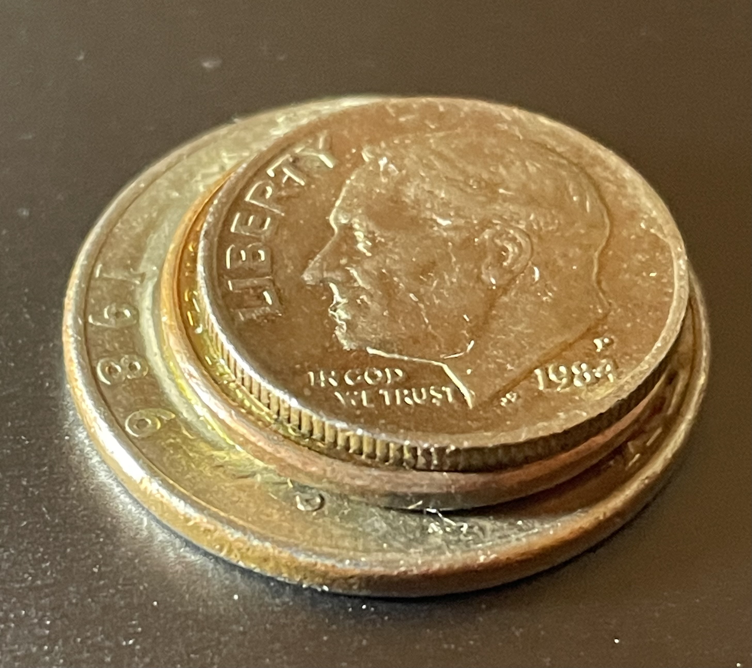 Consider a 31¢ piece created by fastening a dime to a penny to a quarter.
